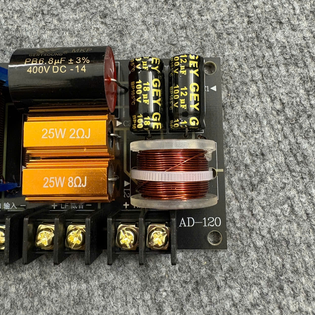 Mạch phân tần AD-120 chuyên dùng cho loa 2 đường tiếng (Bass + Treble), thiết kế tối ưu cho chất âm sạch, tách bạch và ổn định lâu dài.